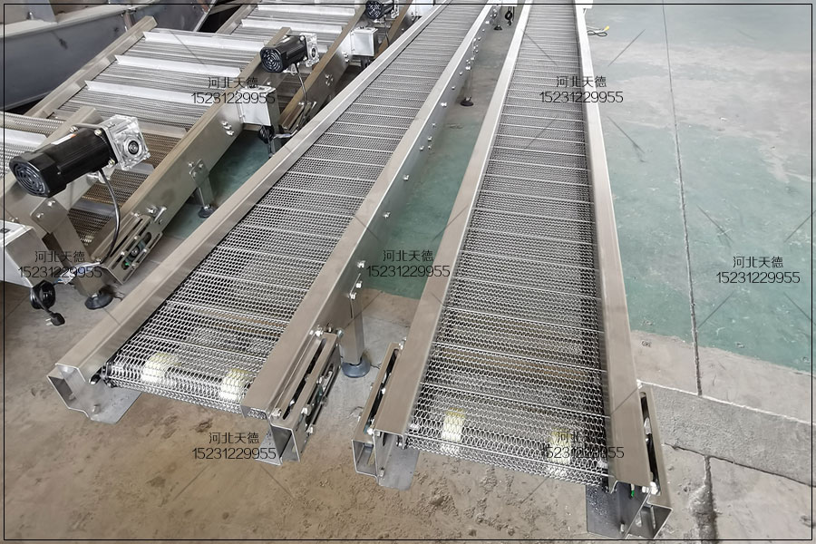 茅臺生產(chǎn)線網(wǎng)帶輸送機是采用循環(huán)往復式的傳動鏈條做為牽引帶電力能源,以鏈板輸送機為輸送的一種輸送機械設(shè)備。網(wǎng)帶輸送機主是由驅(qū)運作能組織、牽此 鏈、呂 板、推動及調(diào)向鏈輪鏈條、聲卡機架等部分產(chǎn)生,擁有輸送才能大、好用范圍廣等特性。網(wǎng)帶輸送機除開黏度尤其大的原材料以外,某些固體原材料跟整 件物 均很有可能用網(wǎng)帶輸送機開展輸送,尤其是飲品領(lǐng)域之中用于輸送各種PET瓶利用的更加廣泛。 茅臺生產(chǎn)線網(wǎng)帶輸送機因其本身的構(gòu)造的尤其性,進而提高了輸送媒介的抗壓強度及可利用性,無論是在總寬上或是在長度上面完畢無前提條件的跳軸。與此同時網(wǎng)帶 輸送機的隔板與檔板也都很有可能完畢固接銷自鎖互鎖,變成輸送媒介的總體構(gòu)件之一。網(wǎng)帶輸送機很有可能開展分成碳素鋼、不銹鋼板及輪胎防滑鏈板等,倘 若所需網(wǎng)帶輸送機需要來選擇不一樣的總寬、不一樣的外觀設(shè)計的鏈板輸送機來完成平面圖輸送、平面轉(zhuǎn)向、升職及著陸等很多的乞求。