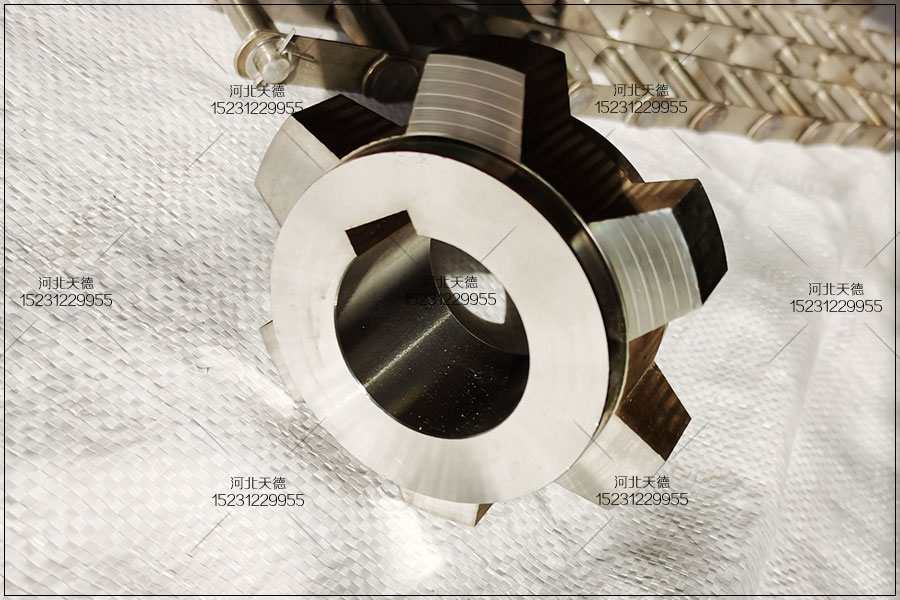 4、打孔不銹鋼鏈板磨爛情況嚴重,外拆卸新傳動鏈條和新傳動鏈條,以保證鏈板輸送帶鏈條與鏈輪的齒合。