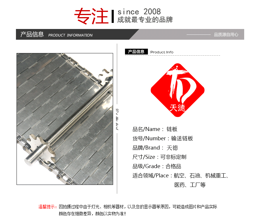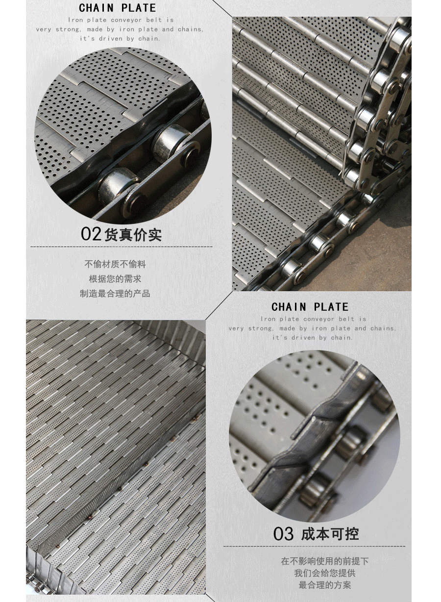 鏈板輸送帶材質:A3低碳鋼,45#鋼,201不銹 鋼,304不銹鋼,316不銹鋼等。