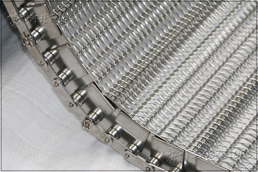 帶擋板的鏈條網帶鏈條的內側加裝的擋板,擋板可以是單獨加裝也可以是加高鏈條片,加裝側面擋板以后可以有效的防止在輸送物料的過程中物料側漏,因為擋板和輸送帶是同步運轉所以加裝擋板以后還可以防止在輸送過程中物料可機身發生接觸和摩擦,避免了物料的損壞和網帶的卡頓。